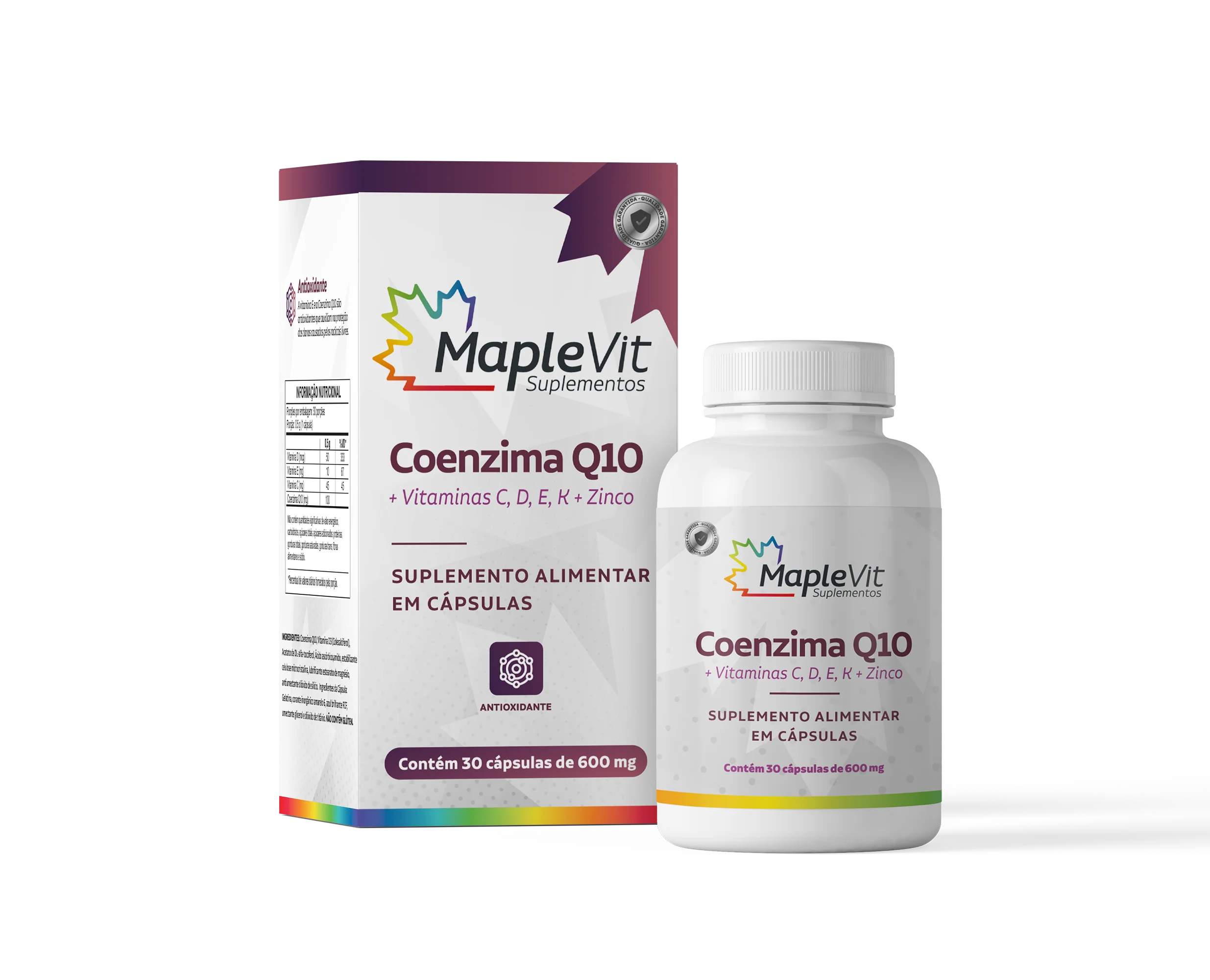 É uma fórmula avançada que combina Coenzima Q10 com as vitaminas C, D, E, K e Zinco para fornecer um poderoso suporte antioxidante e energético. Este suplemento é projetado para melhorar a produção de energia celular, proteger as células contra danos oxidativos e apoiar a saúde cardiovascular.