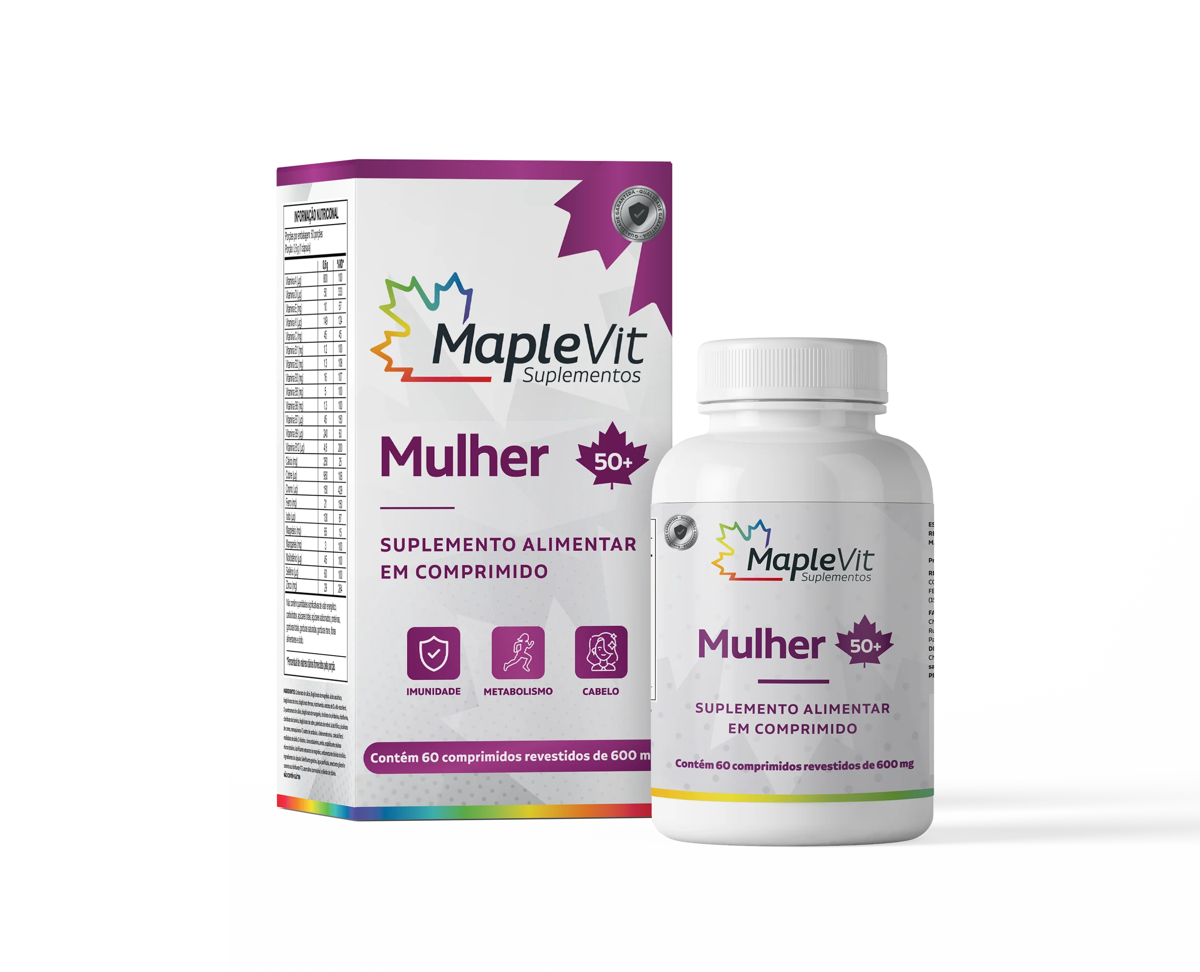 Maple Vit Mulher 50+ contém nutrientes essenciais para uma vida mais saudável. Um suplemento multivitamínico formulado com 23 micronutrientes que equilibram o organismo e dão muito mais disposição às mulheres com mais de 50 anos.